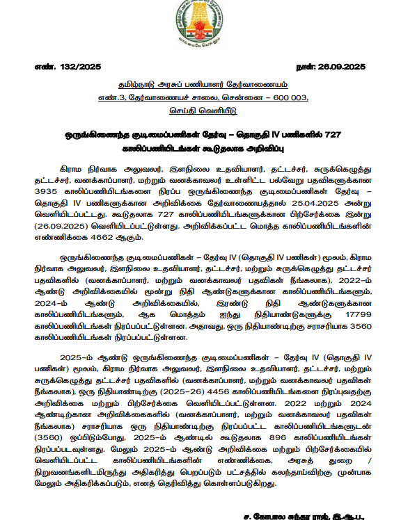 TNPSC Group 4 Vacancy 2025 | TNPSC Group 4 New Vacancy Released | TNPSC Exams 2025 | www.tnpsc.gov.in