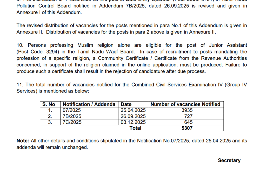TNPSC Group 4 New Vacancy 2025